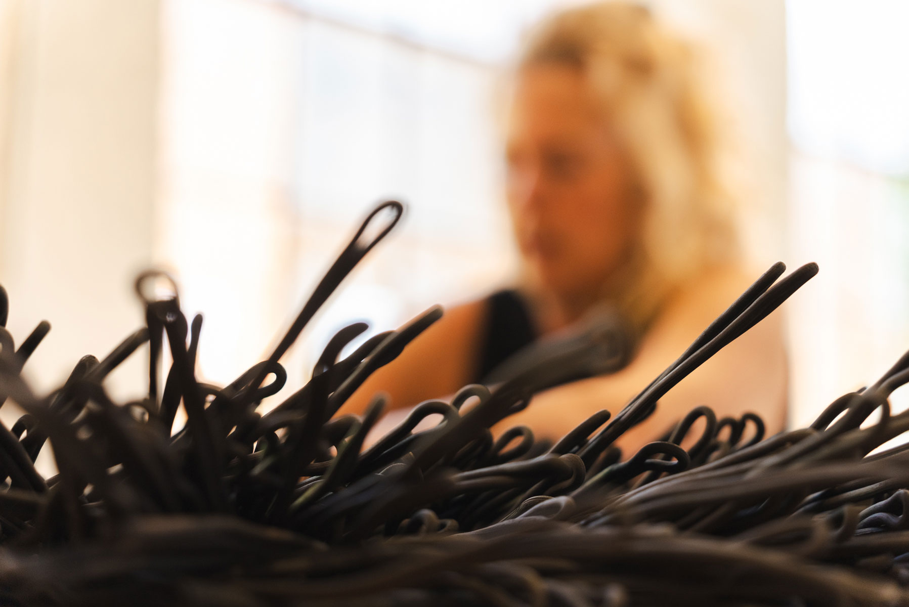 At the heart of my artwork is a love of materiality and fascination with transformation. I am absorbed in a labor-intensive process. Each part is unique, serving as an architectural component, combined in various ways to discover their visual behavior. I aim to transcend initial forms and create unforeseen surfaces, drawing connections between observation and memory.