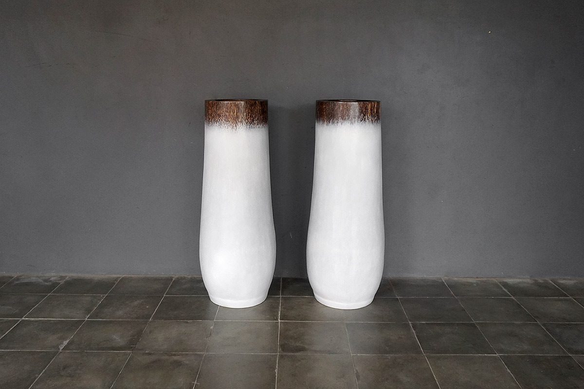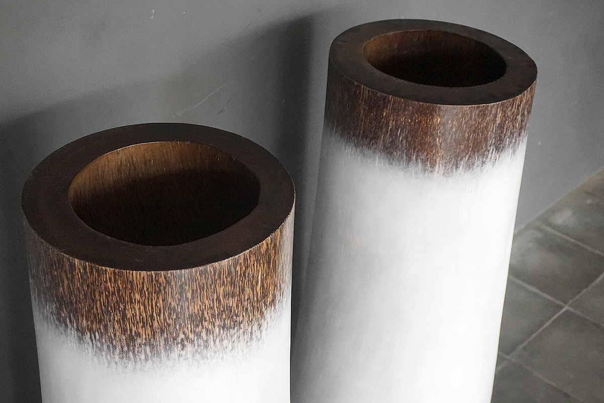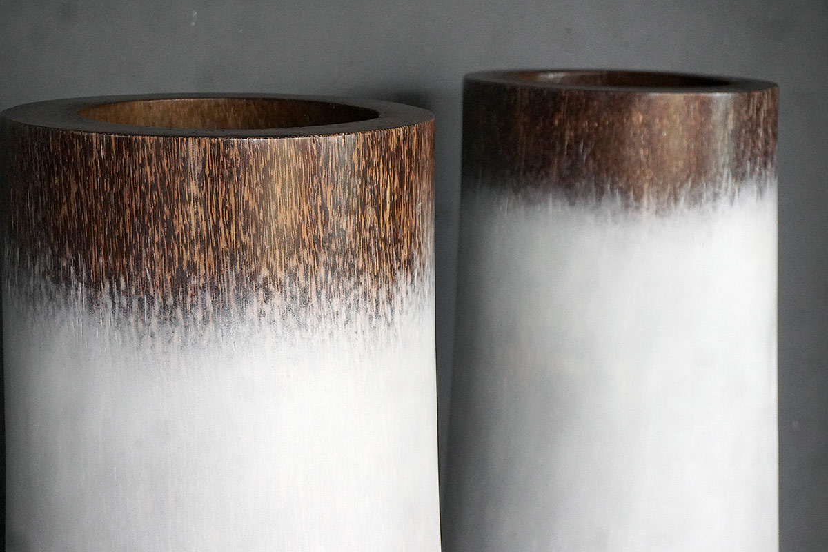 Our Palm vases are hand carved and hallowed out from huge palm tree trunks. Sustainable sourced and finished in a beautiful Ducco Effect. Due to the nature of our products each item may vary in look, shape and weight.
