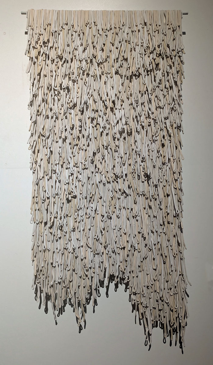 Inspired by the avian world, my current work explores repetition of form and material transformation, creating layered, tactile works referencing bird wing structures (remiges and retrices).