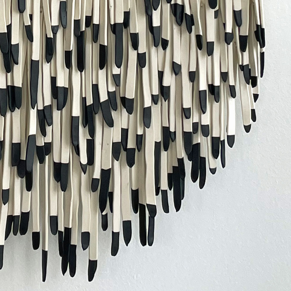 Inspired by the avian world, my current work explores repetition of form and material transformation, creating layered, tactile works referencing bird wing structures (remiges and retrices).
