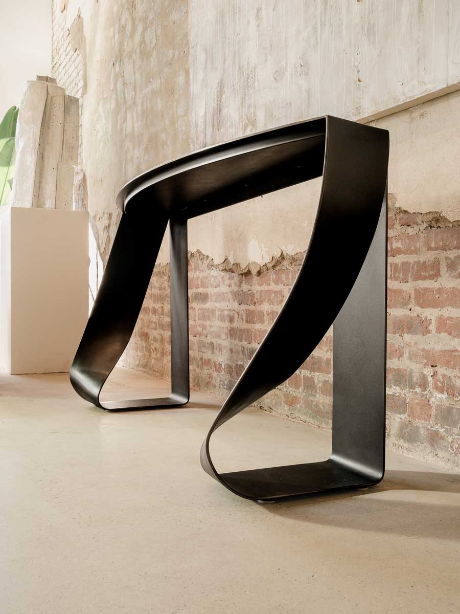 Body’s use of unconventional metalworking techniques sets his work apart. Pushing the boundaries of the medium through forging, forming, and fabricating, he produces original works that explore balance, tension, movement, and relationships. His pieces reflect a deep commitment to craftsmanship and a nuanced understanding of form.