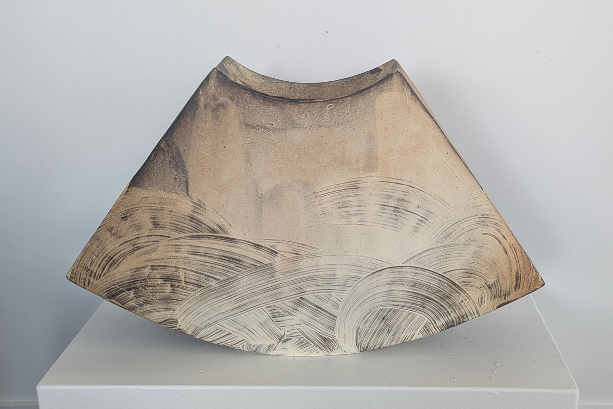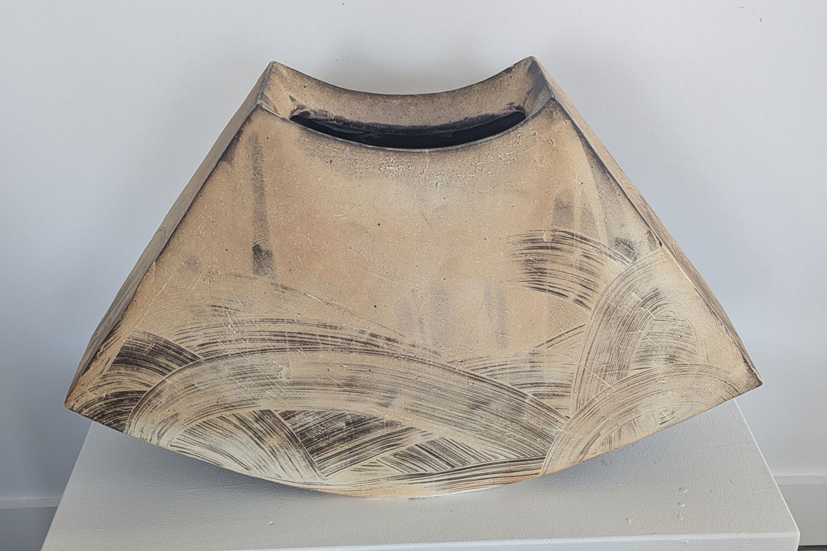 Stone Wedge Vase is woodfired for 3 days in a kiln built by the artist and made from hand foraged wild clay