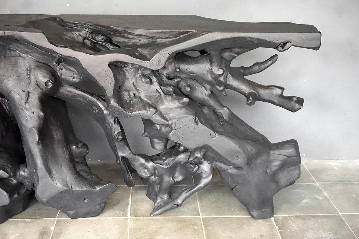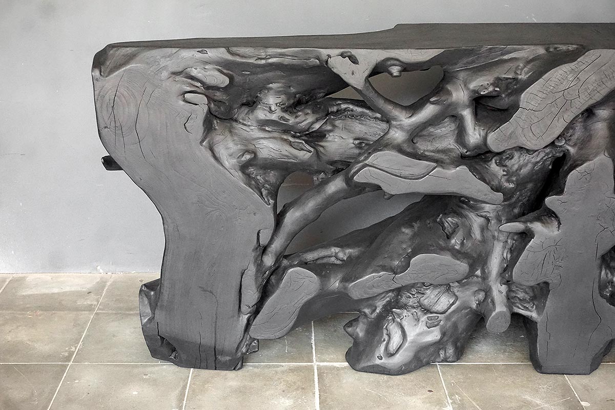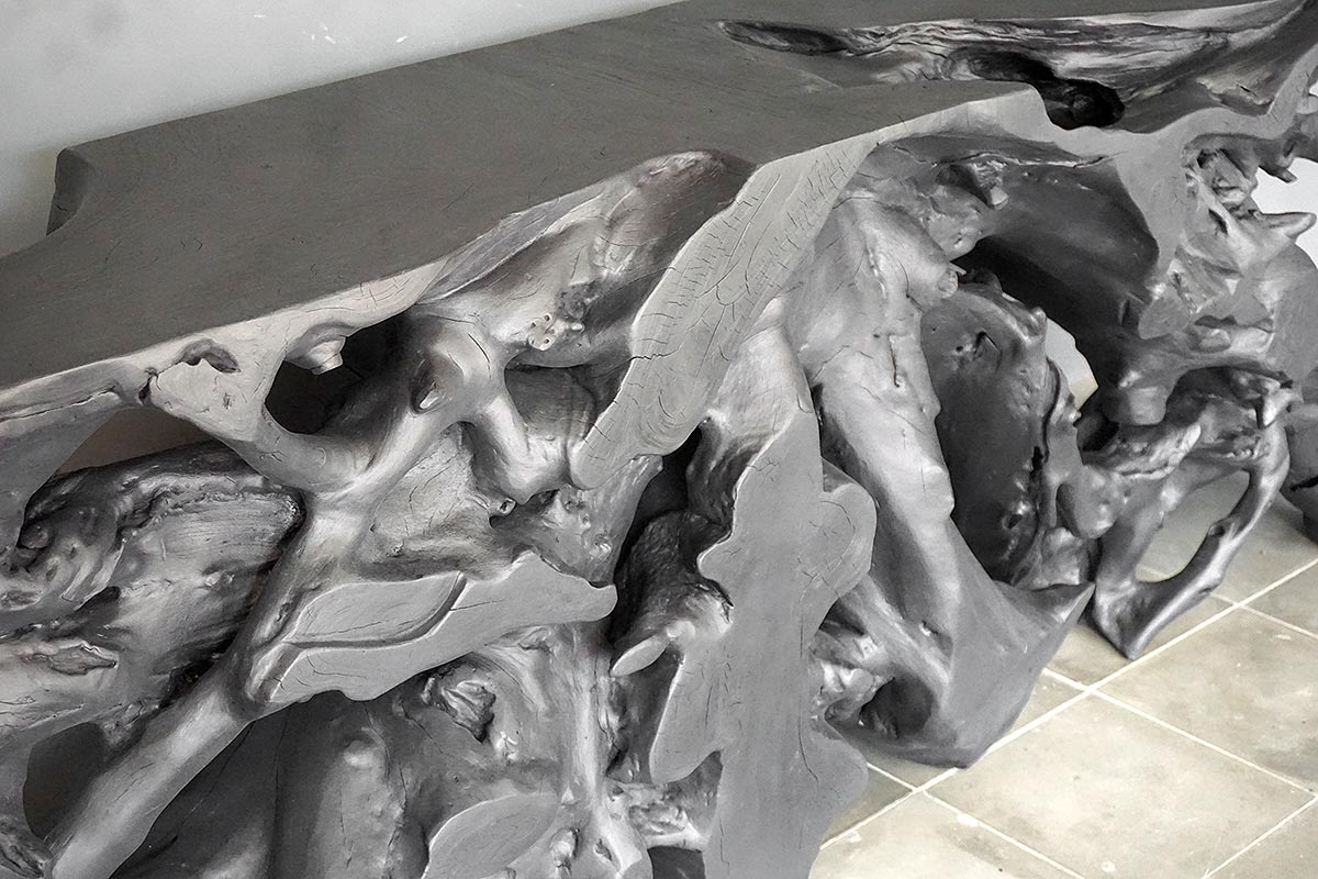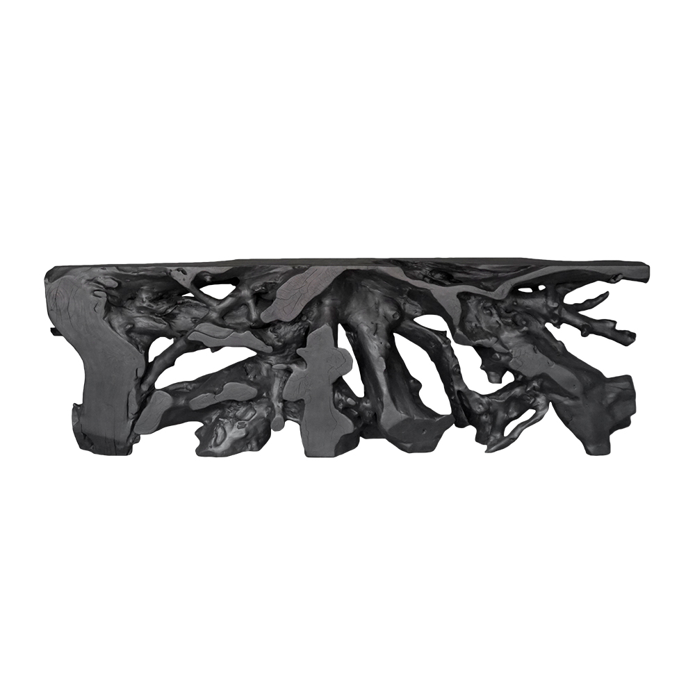 Teak Root Console in Charcoal Finish. No two items will be identical due to the natural characteristics of the wood. The overall size, texture and coloration will vary slightly. Actual Piece Shown.