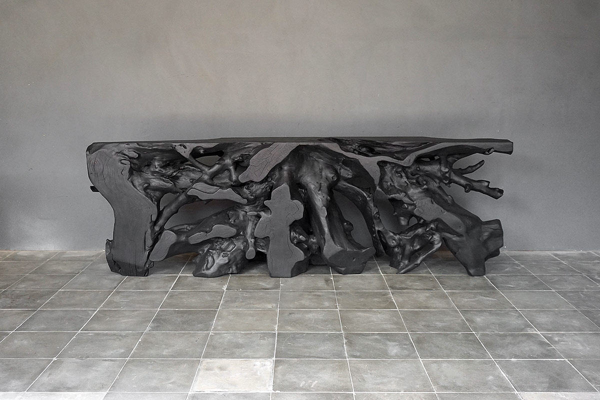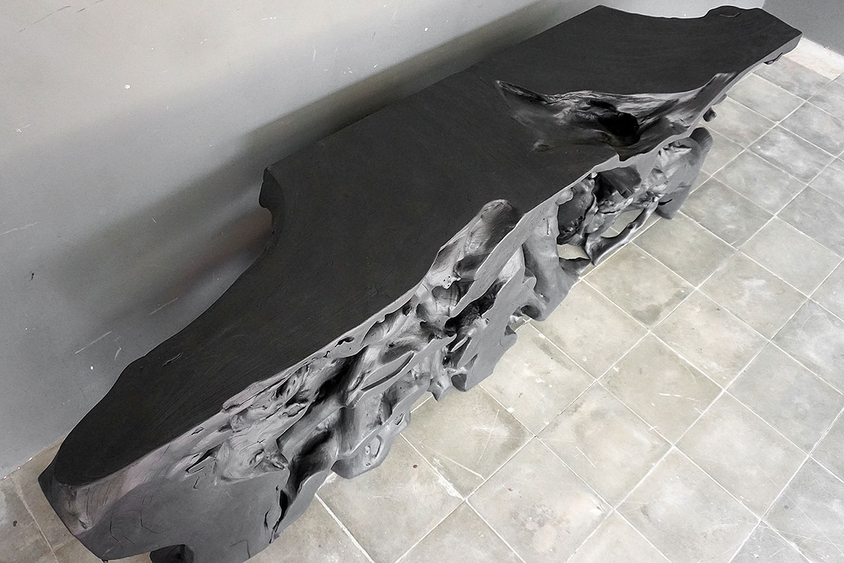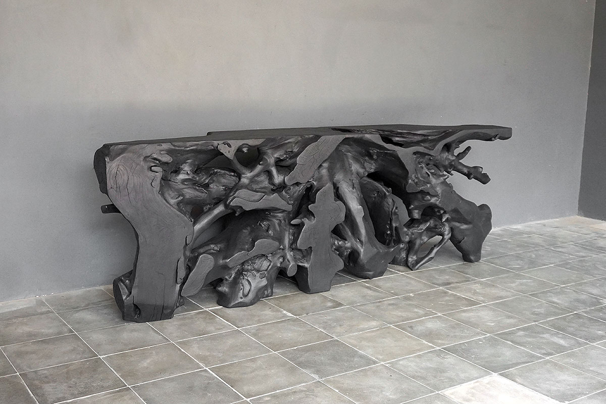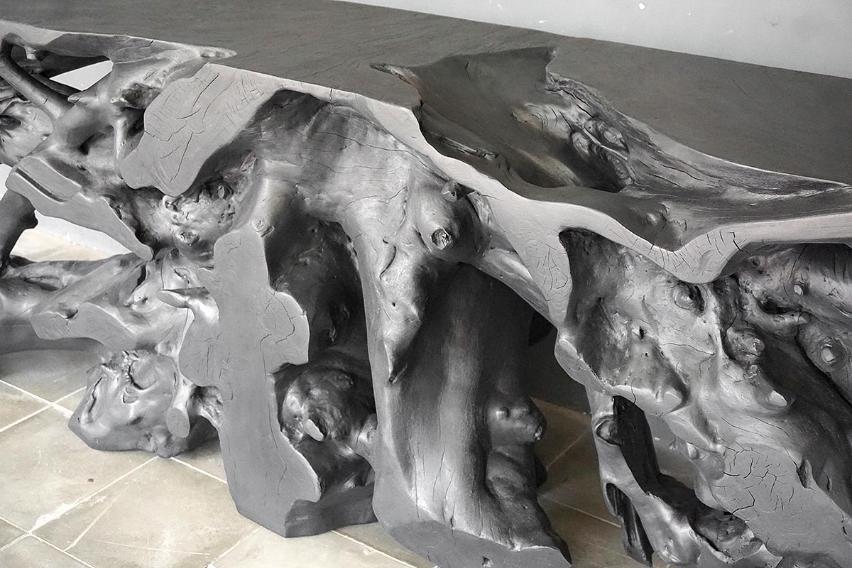 Teak Root Console in Charcoal Finish. No two items will be identical due to the natural characteristics of the wood. The overall size, texture and coloration will vary slightly. Actual Piece Shown.