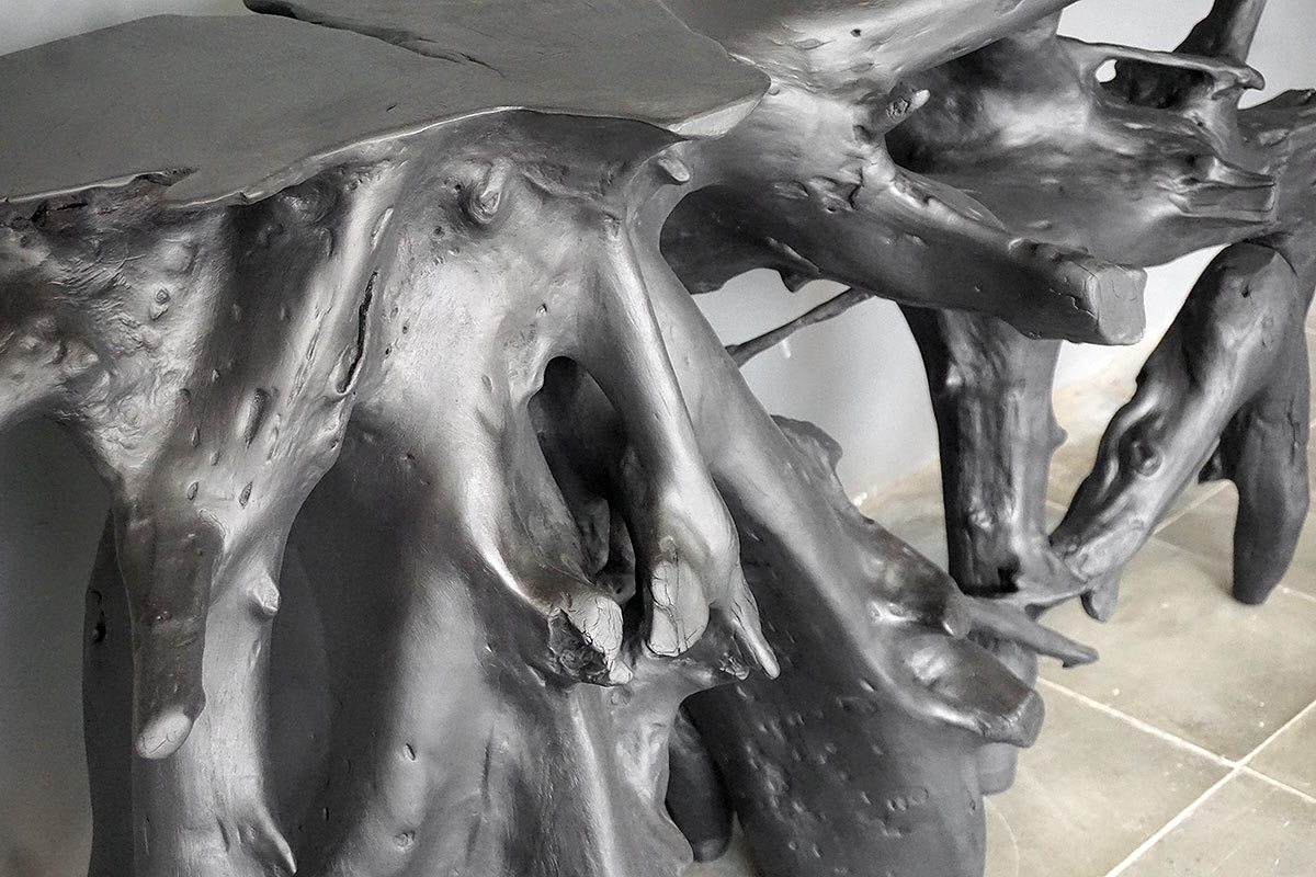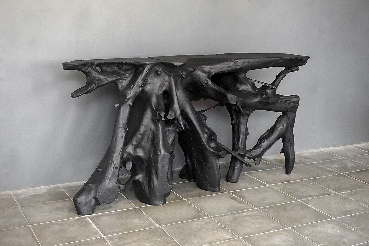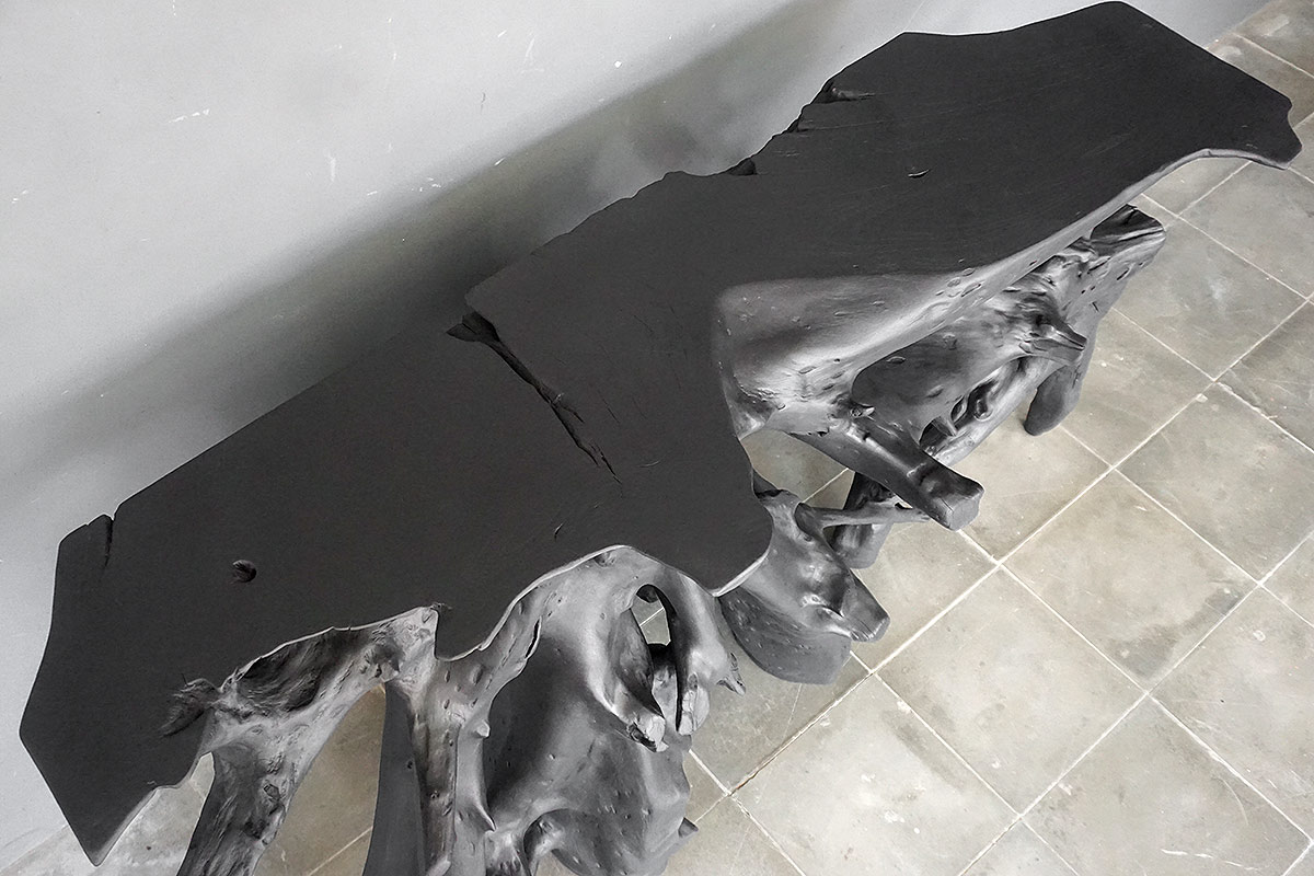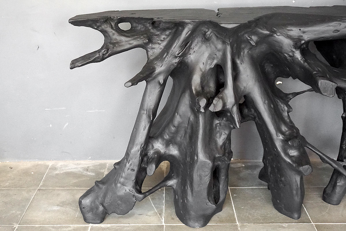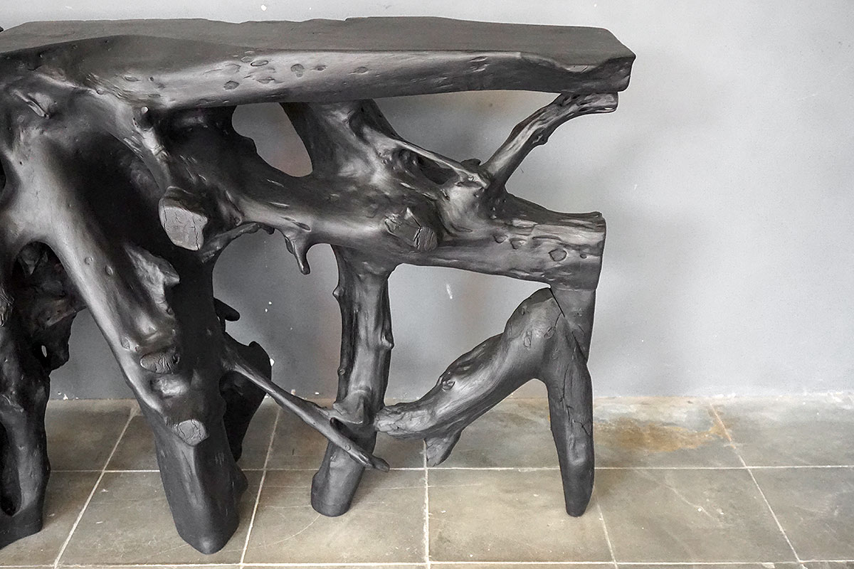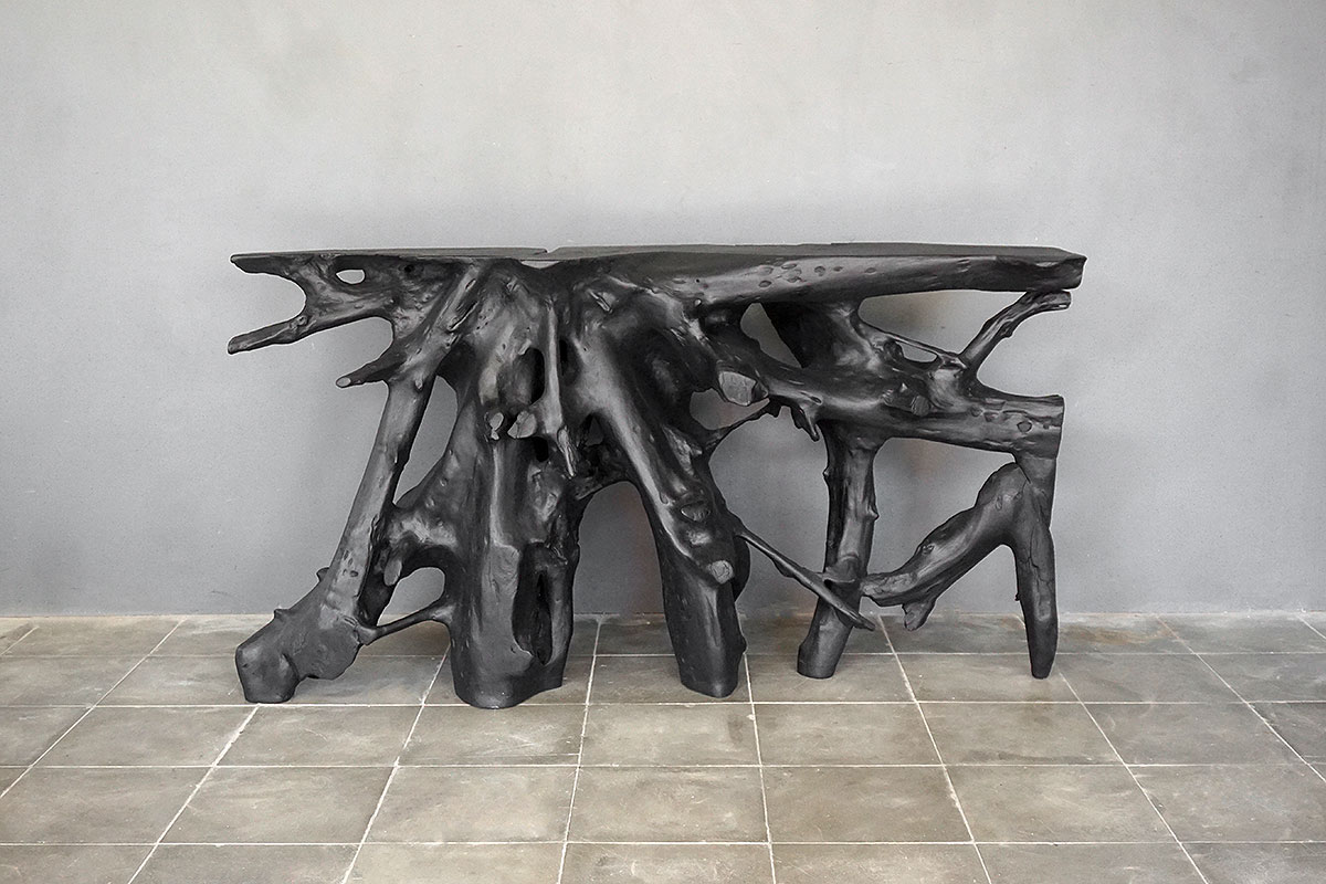 Teak Root Console in Charcoal Finish