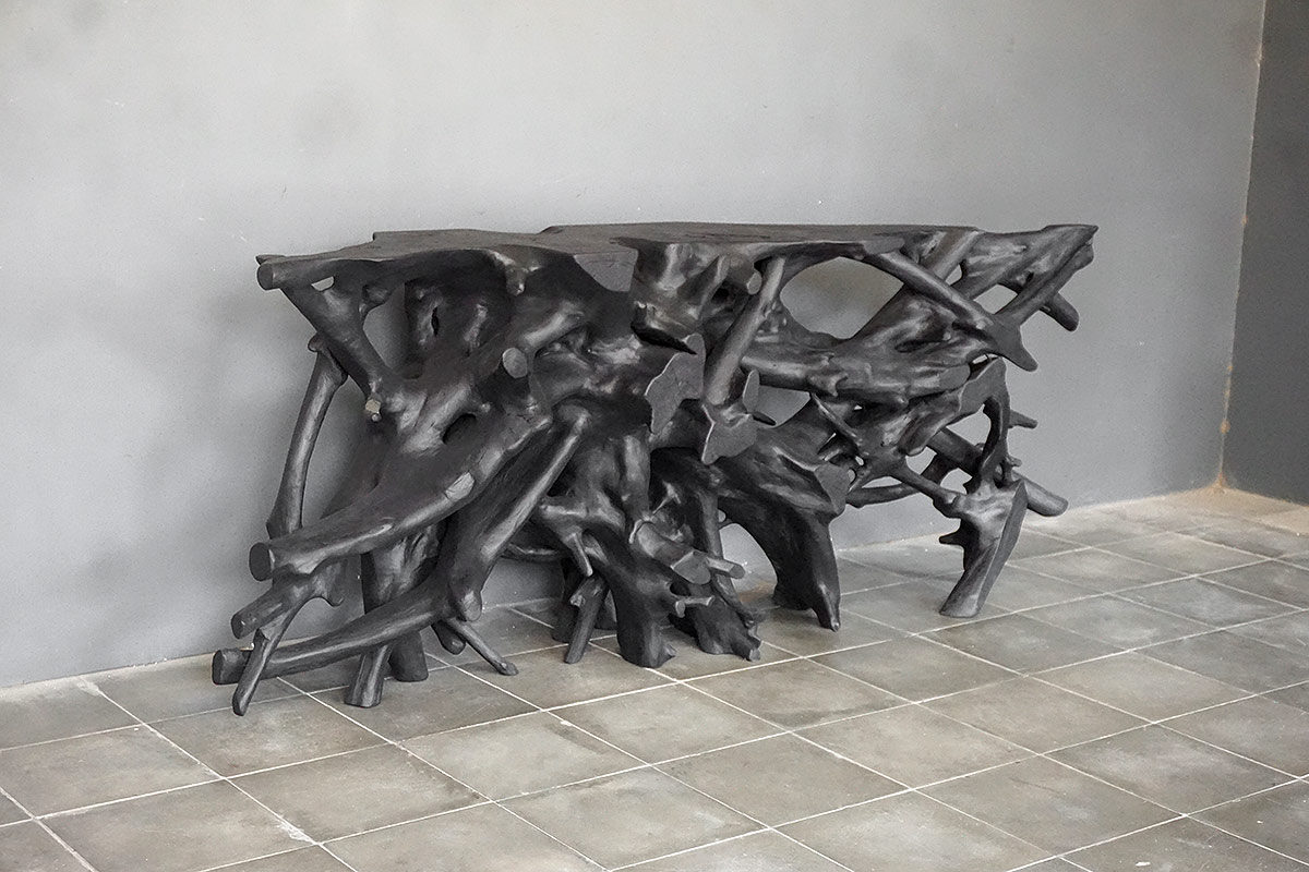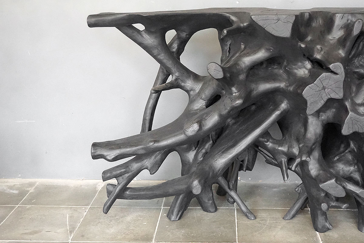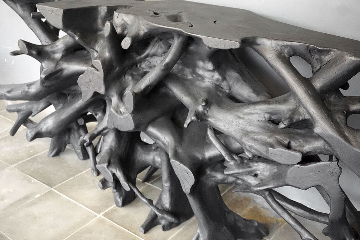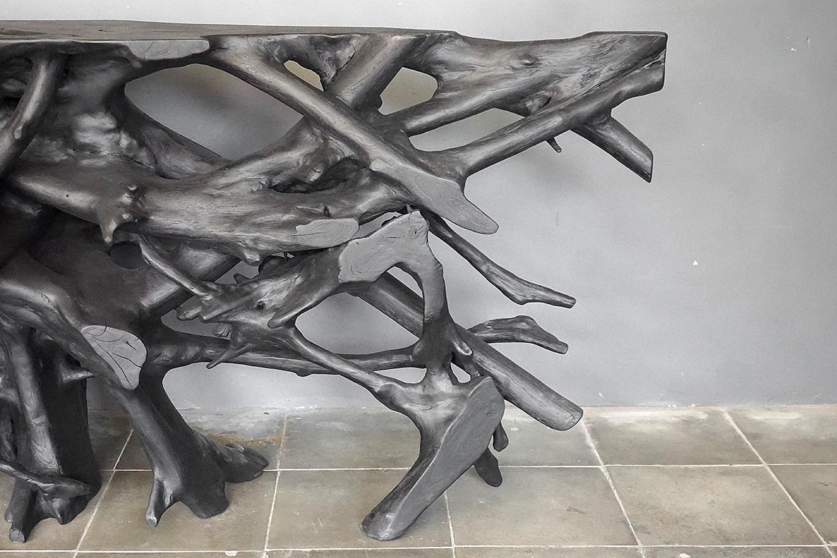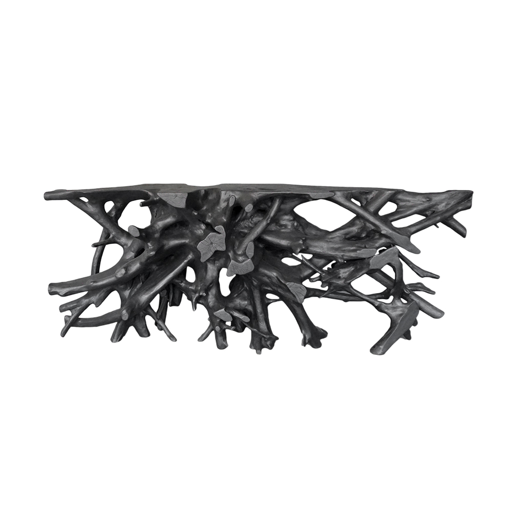 Teak Root Console in Charcoal Finish