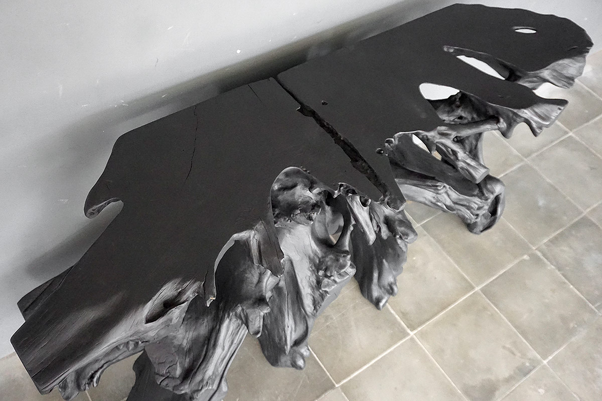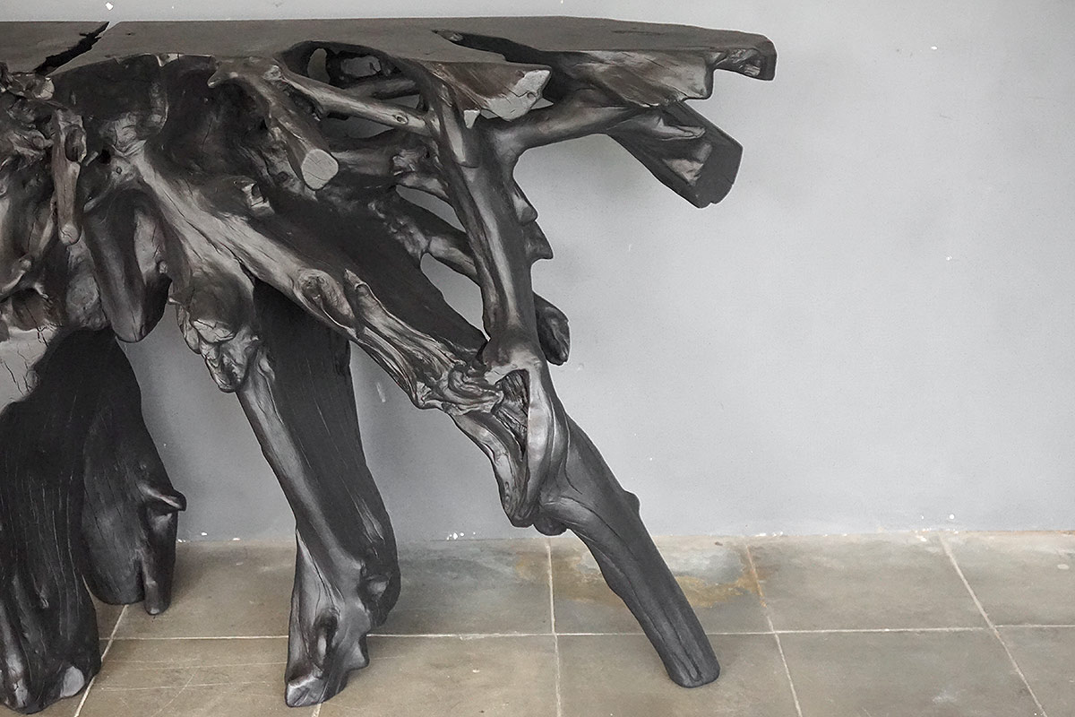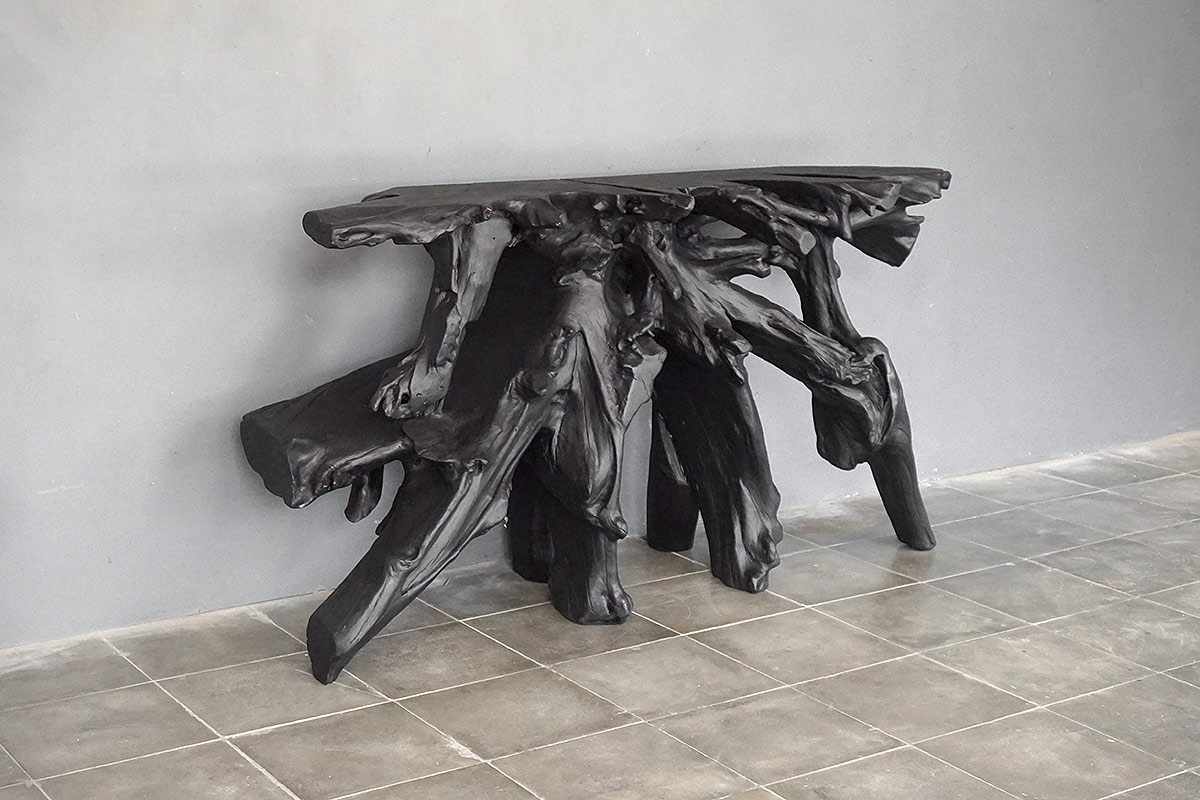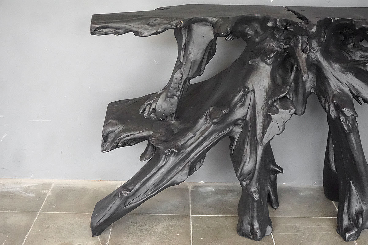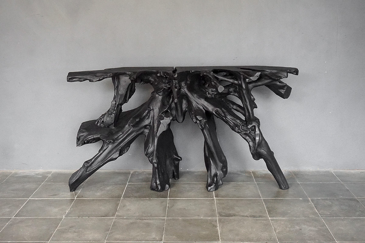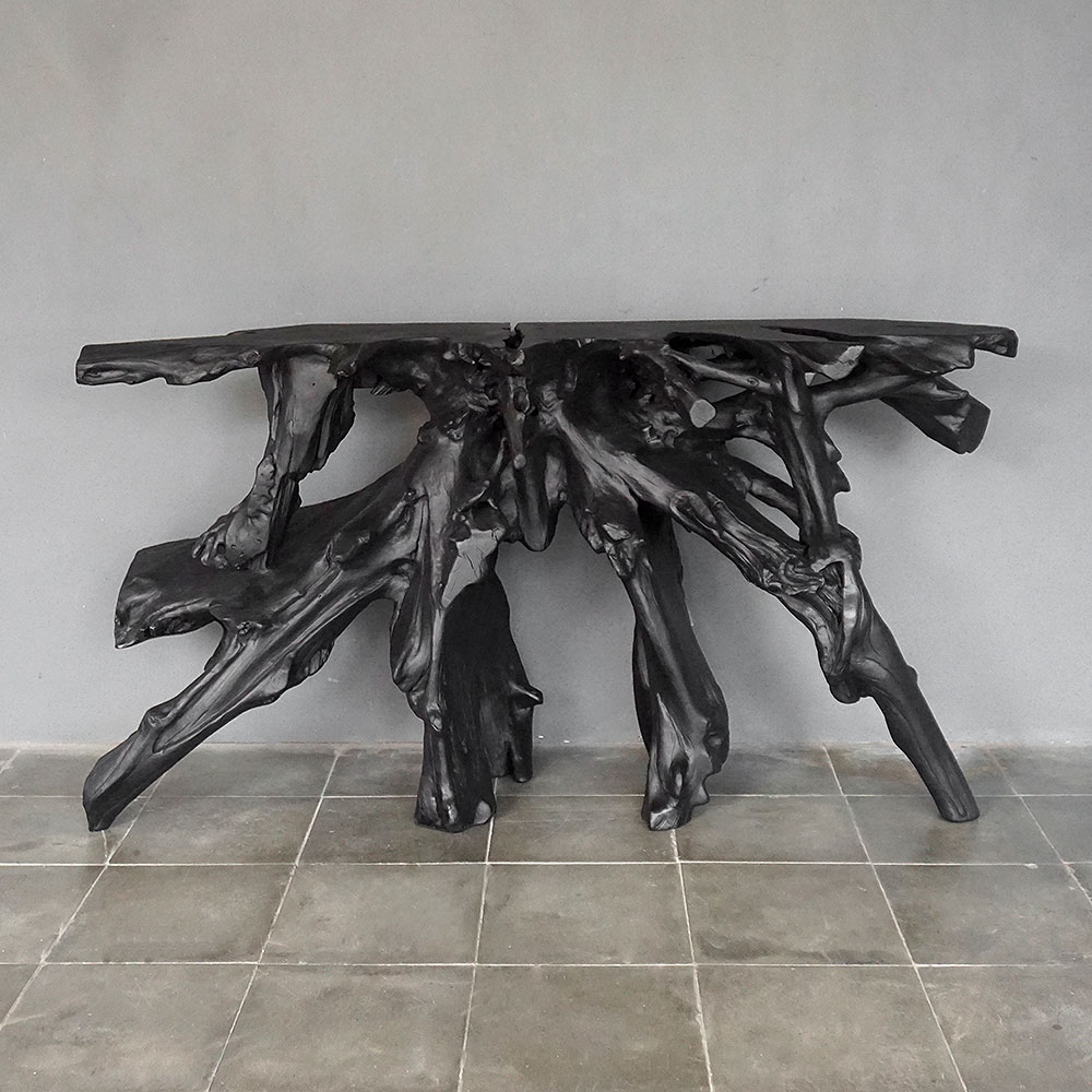 Teak Root Console in Charcoal Finish