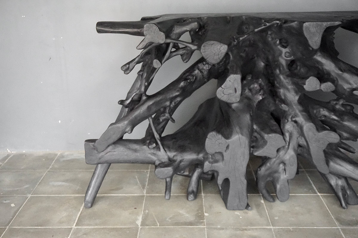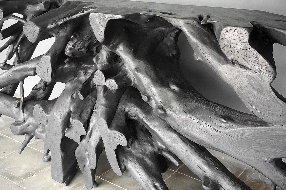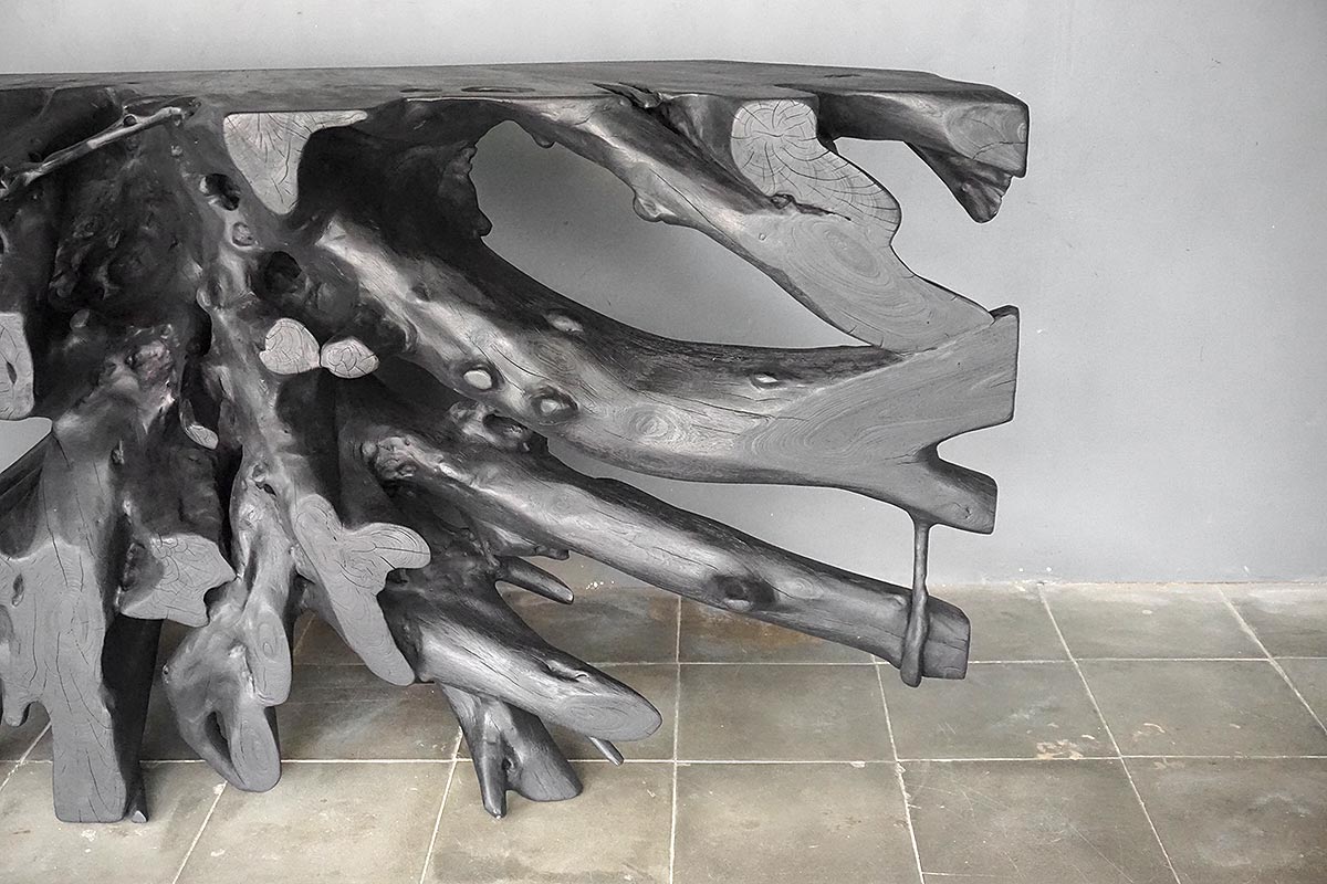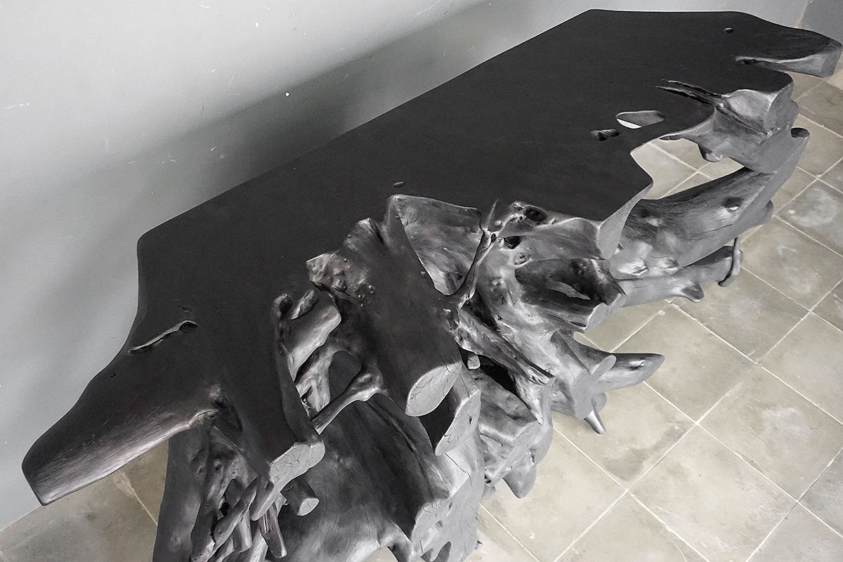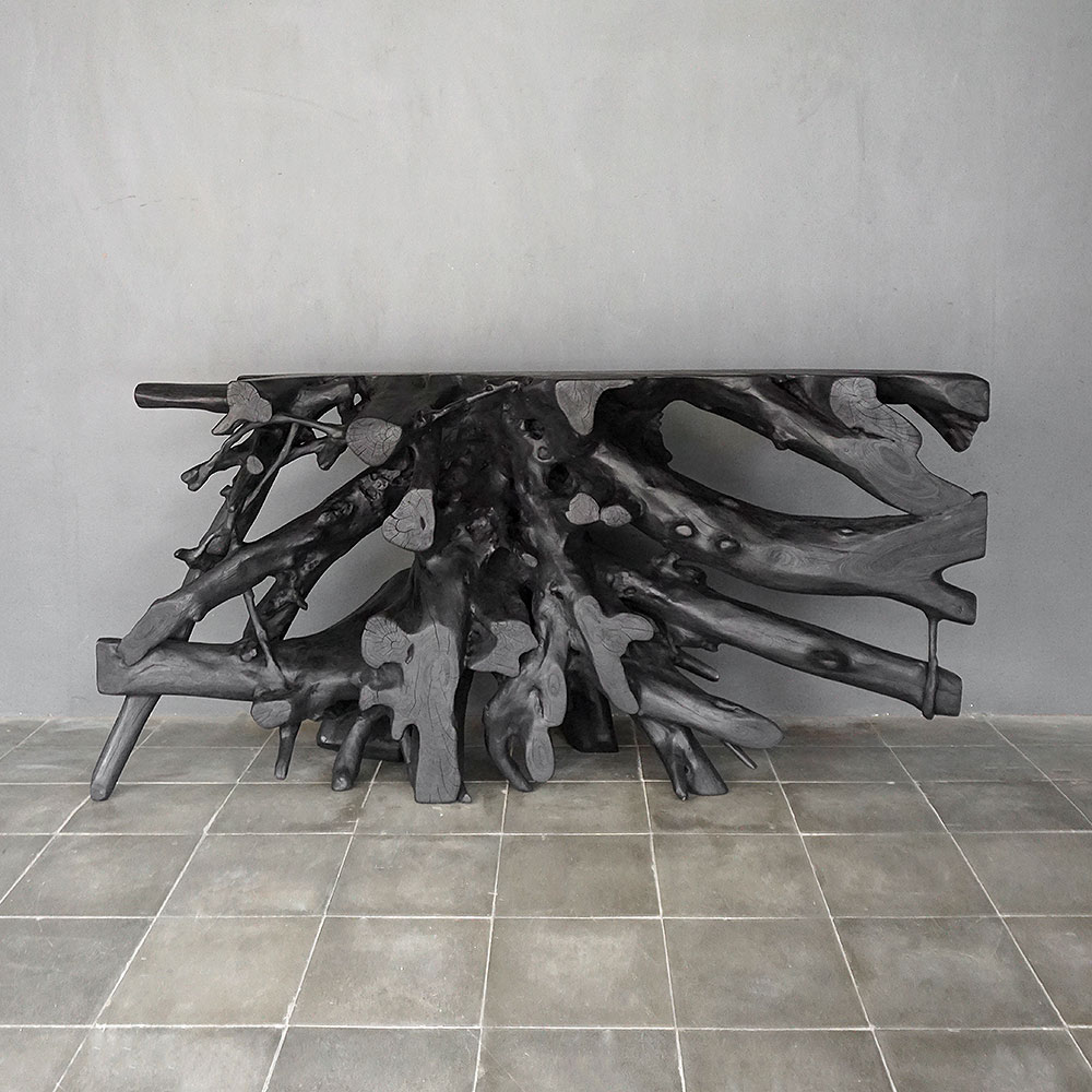 Teak Root Console in Charcoal Finish