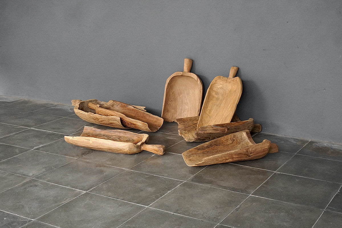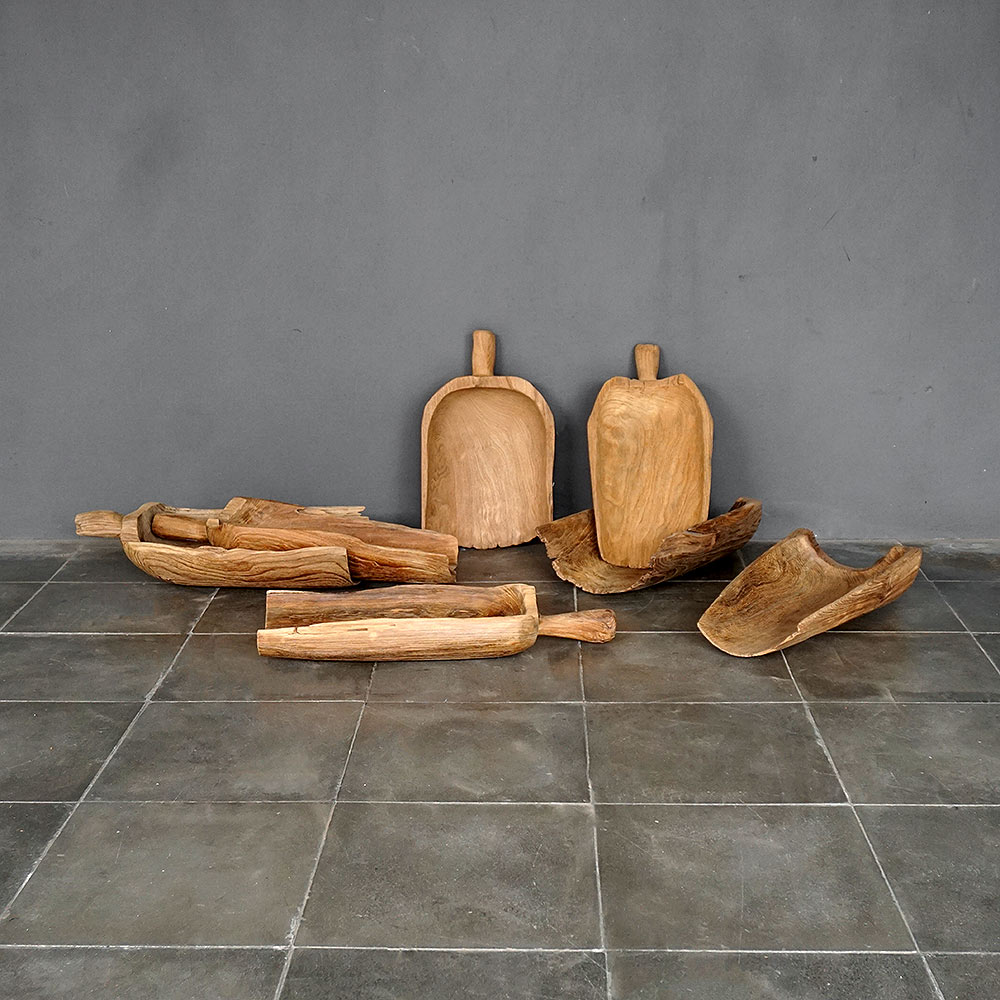 The Antique Teak Shovel is a charming piece crafted from solid teak, a wood valued for its durability and rich natural character. Each piece carries a unique patina and texture that reflect the passage of time, making it truly one of a kind. Originally designed for practical use, it can now serve as a distinctive scoop for ice or as a decorative accent that adds a touch of rustic authenticity to any space.