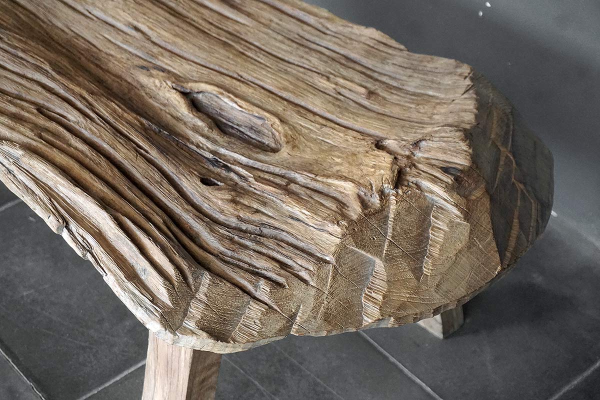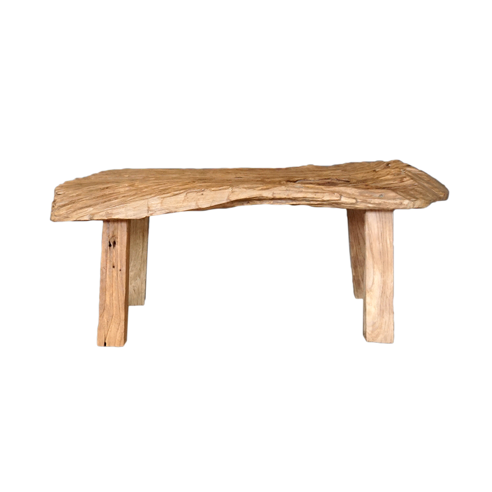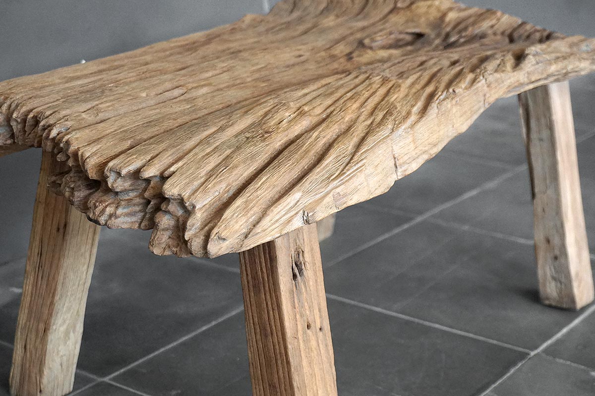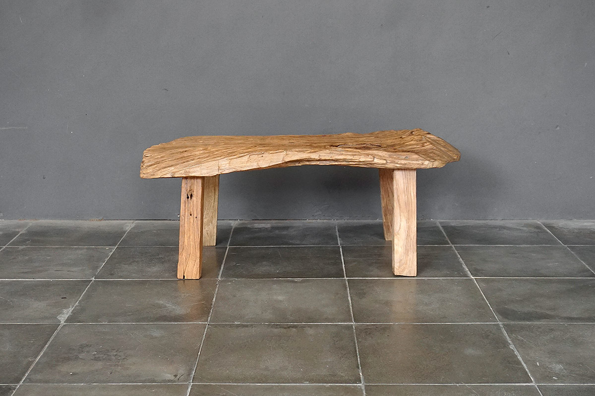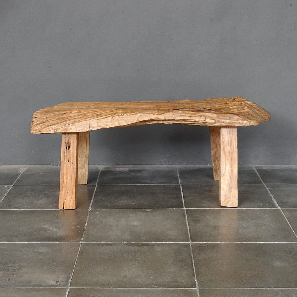 An original antique Javanese kampung bench. The salvaged wood texture and strong patina color create a look that evolves over time. Actual piece shown