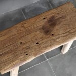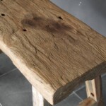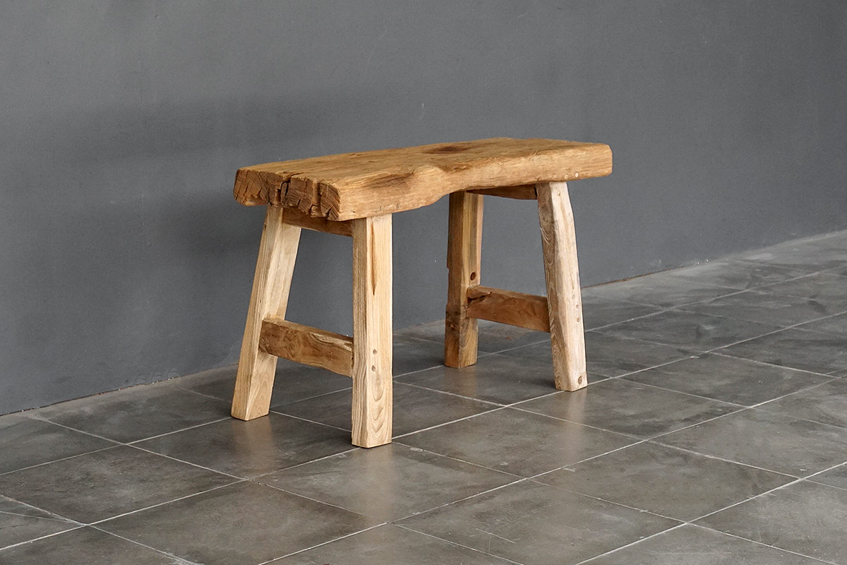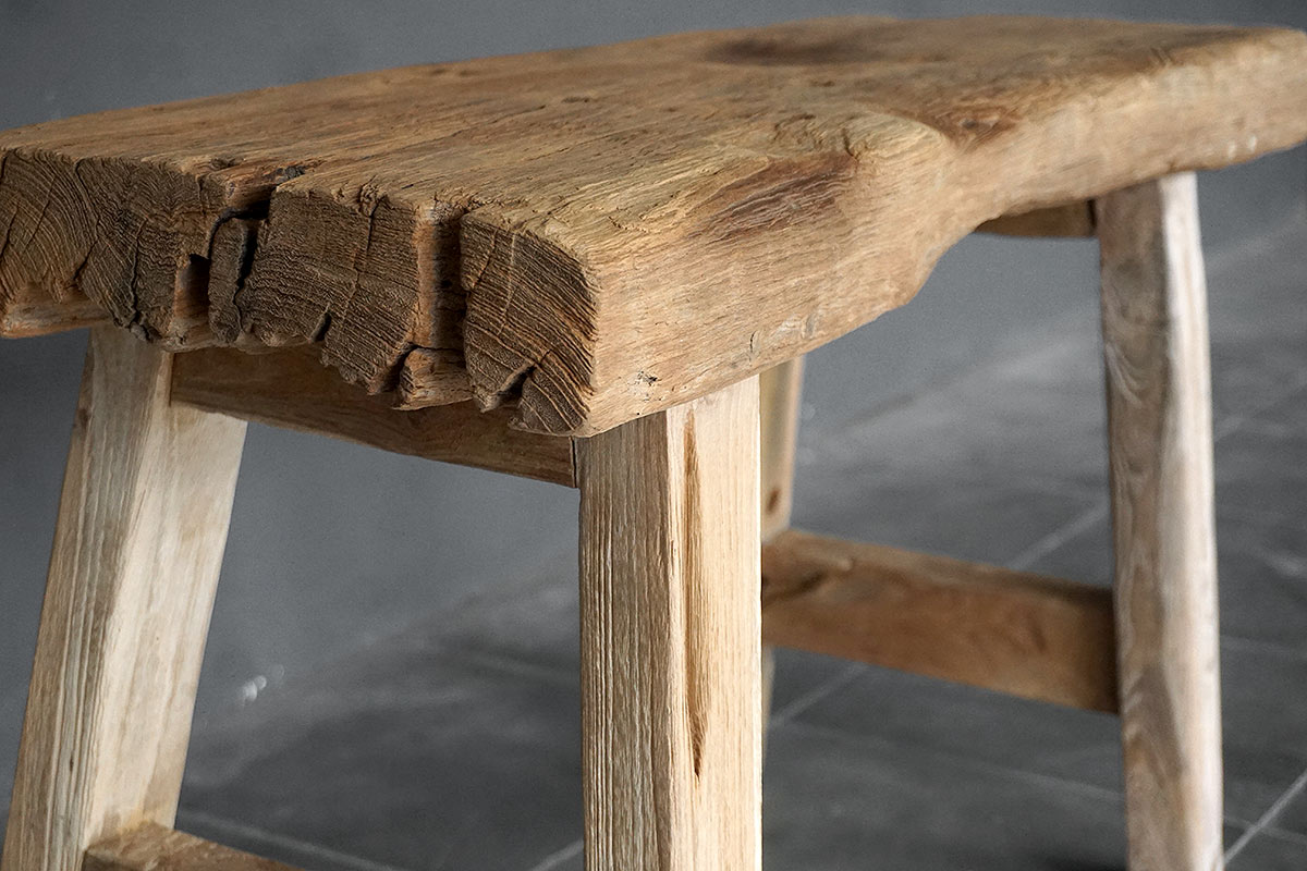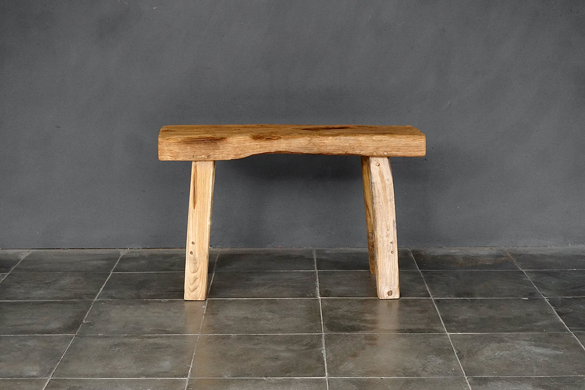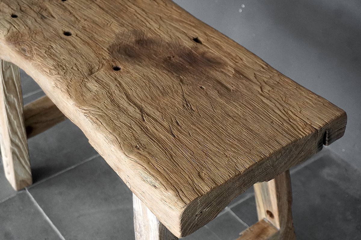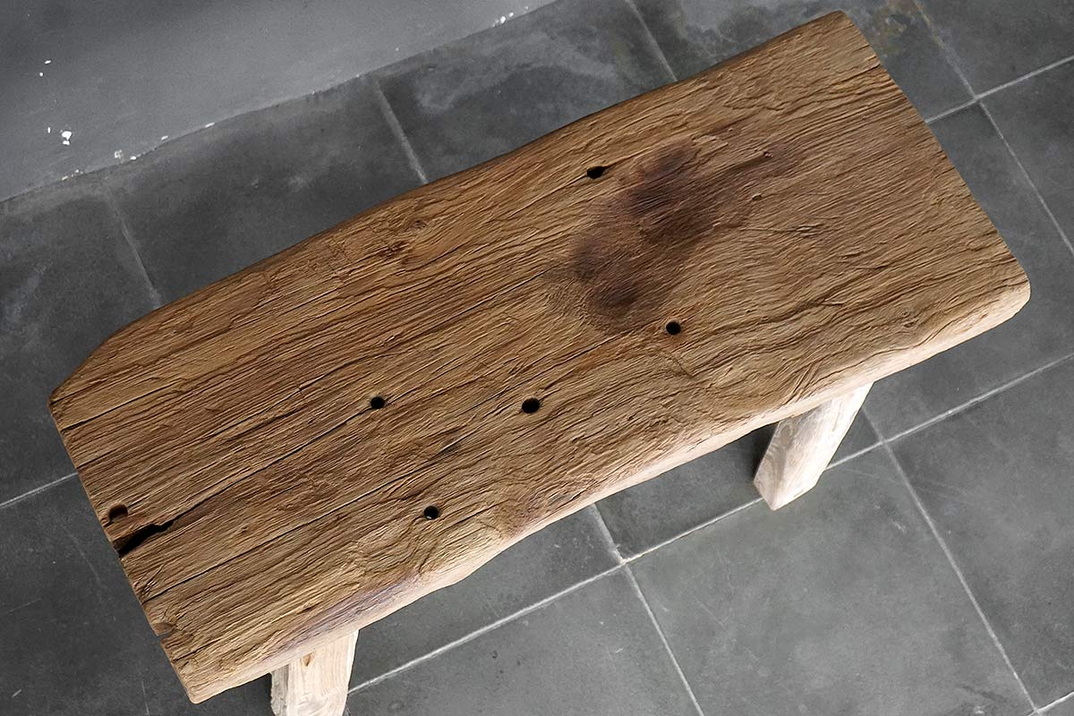 An original antique Javanese kampung bench. The salvaged wood texture and strong patina color create a look that evolves over time. Actual piece shown