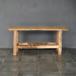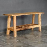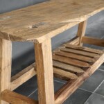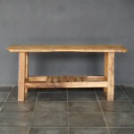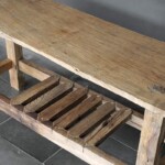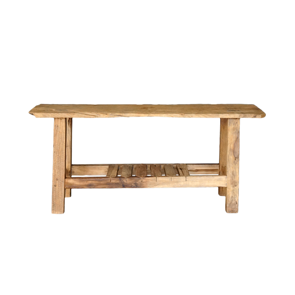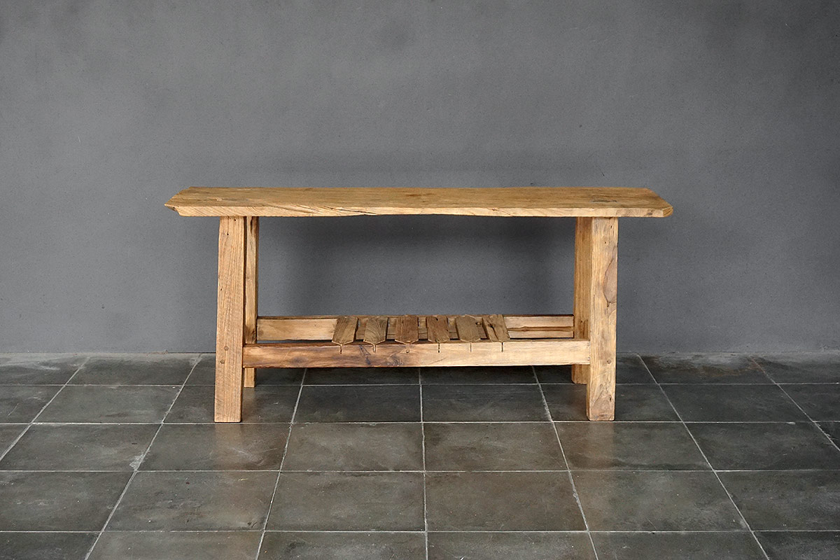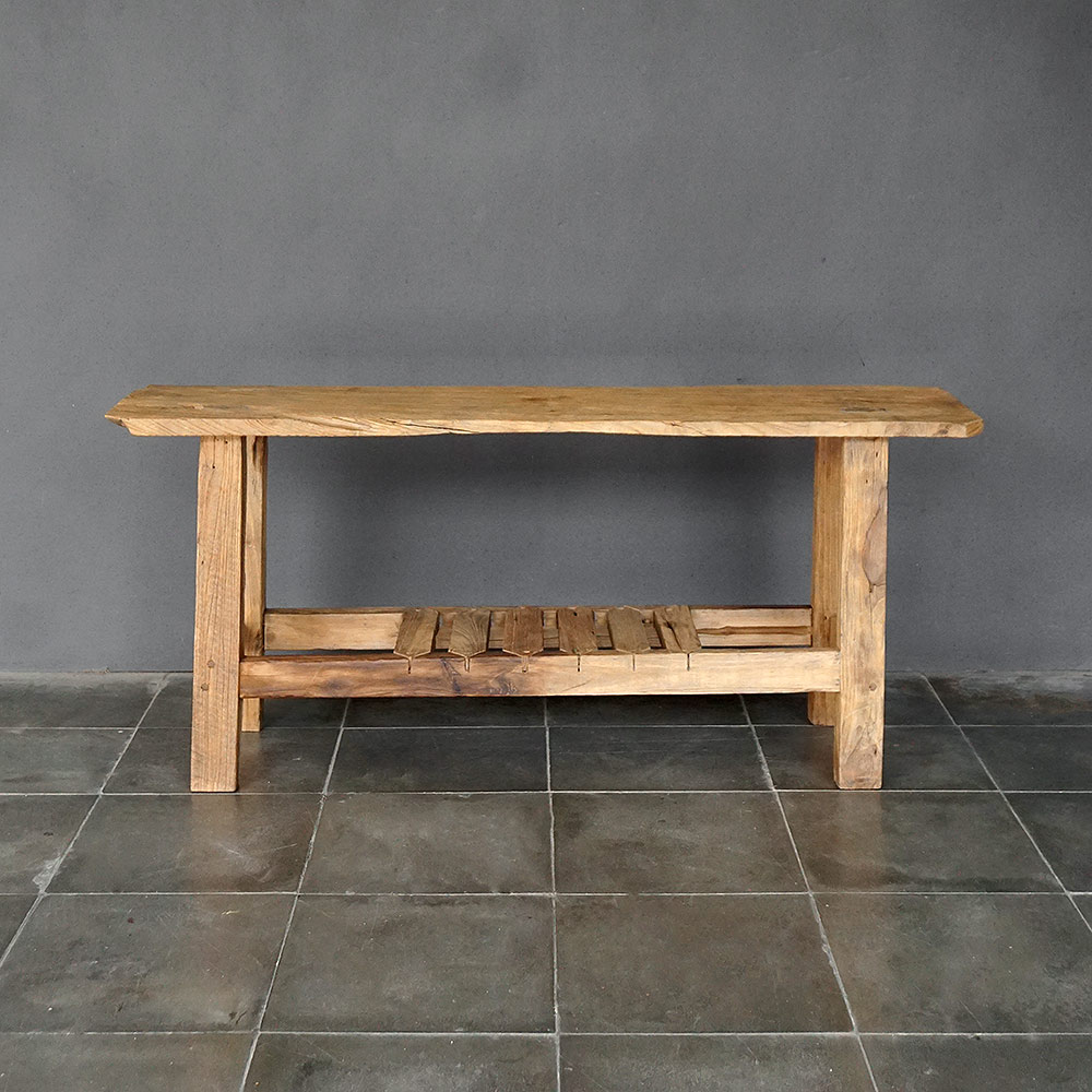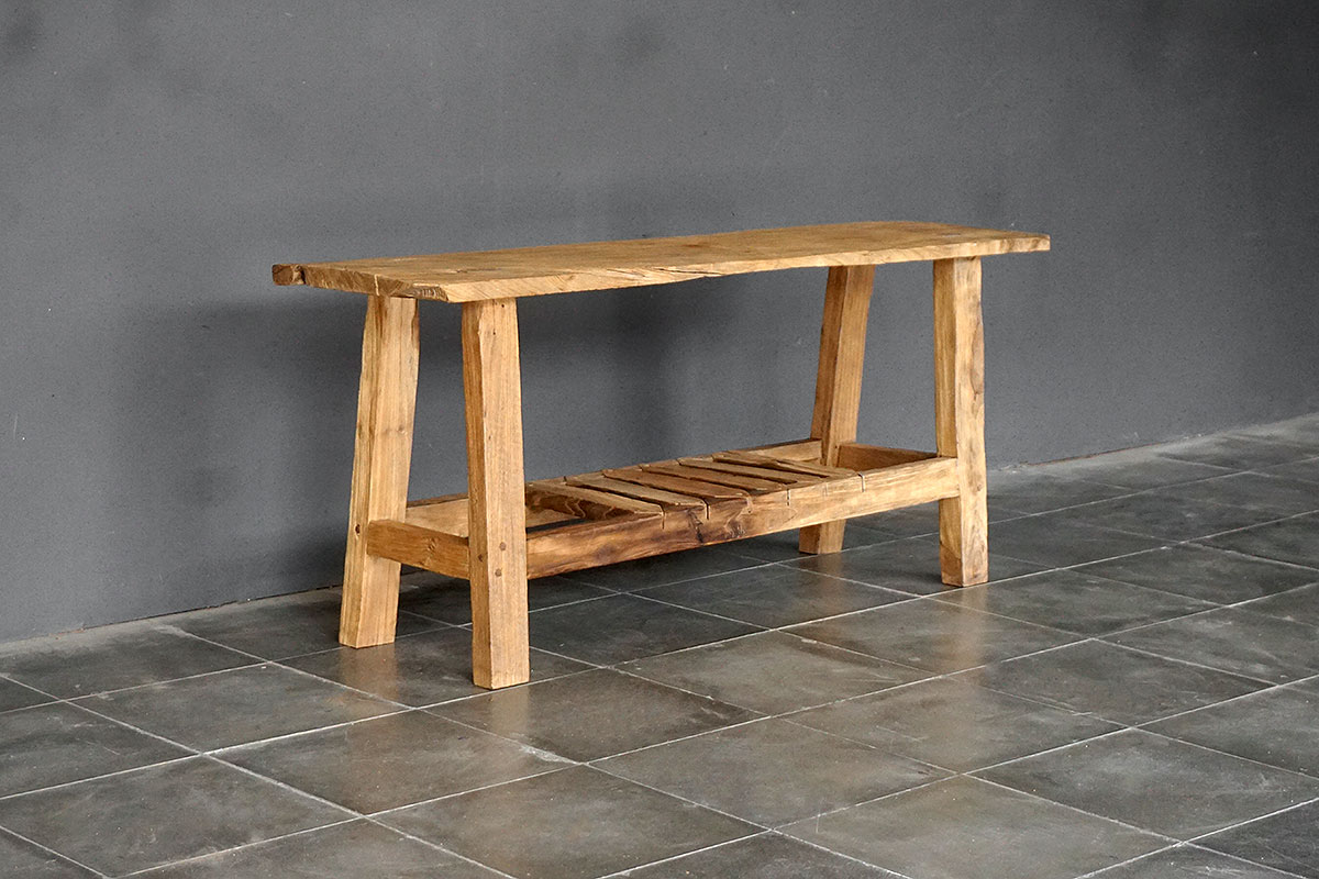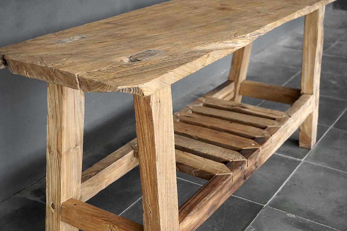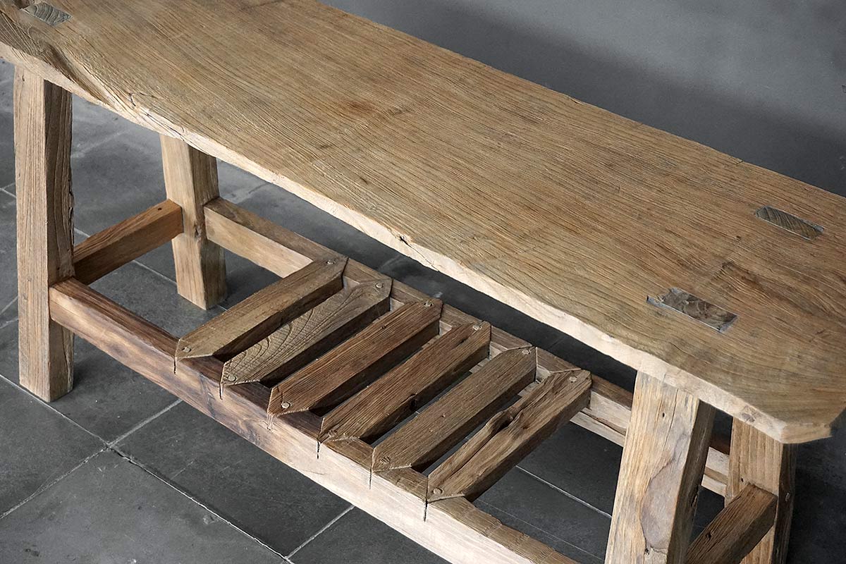 An original antique Javanese kampung bench. The salvaged wood texture and strong patina color create a look that evolves over time. Actual piece shown