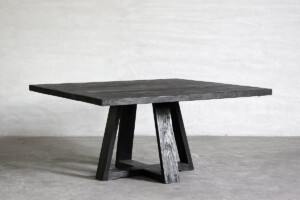 Square Reclaimed Elm Plank Table – Pedestal Style Leg – LE – Light Elm