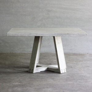Concrete and Reclaimed Elm Table – White Concrete Top on Light Elm X base